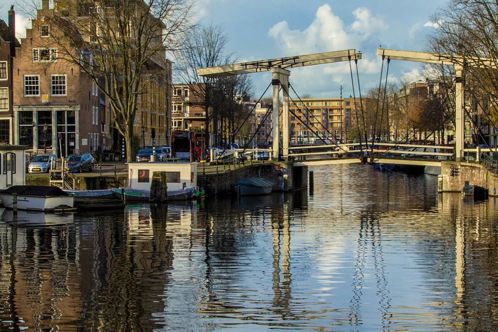 Ophaalbrug, Amsterdam, Brug, Grachten, Grachtenpanden, Woonboot, Water, Wolken