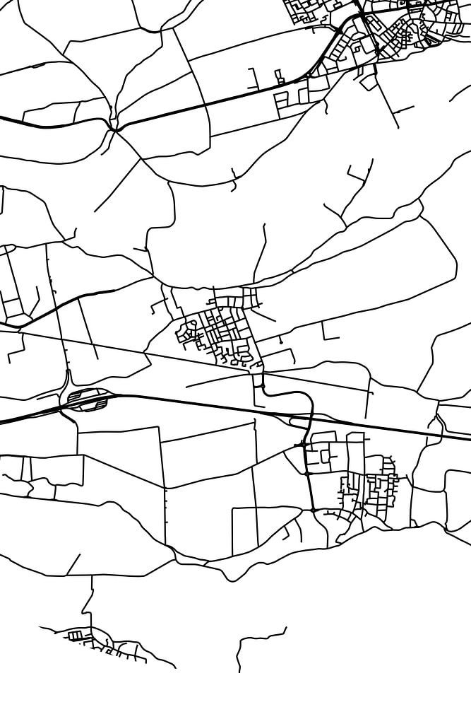 Black and white map, street map or street plan of Opheusden. Opheusden is located in the Betuwe, in the municipality Neder-Betuwe, province Gelderland. On the city map all public roads in Opheusden are included. Furthermore, the map is provided with the coordinates of the center of Opheusden.