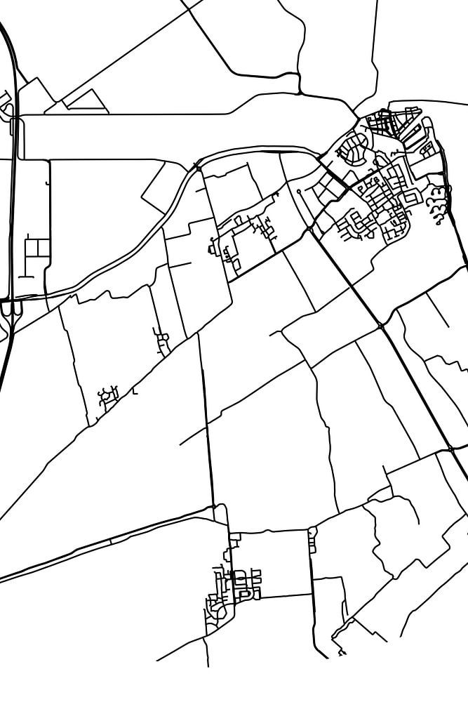 Black and white map, street map or street plan of Opperdoes. Opperdoes is located in the municipality of Medemblik, province of North Holland. On the city map all public roads in Opperdoes are included. Furthermore, the map features the coordinates of the center of Opperdoes.