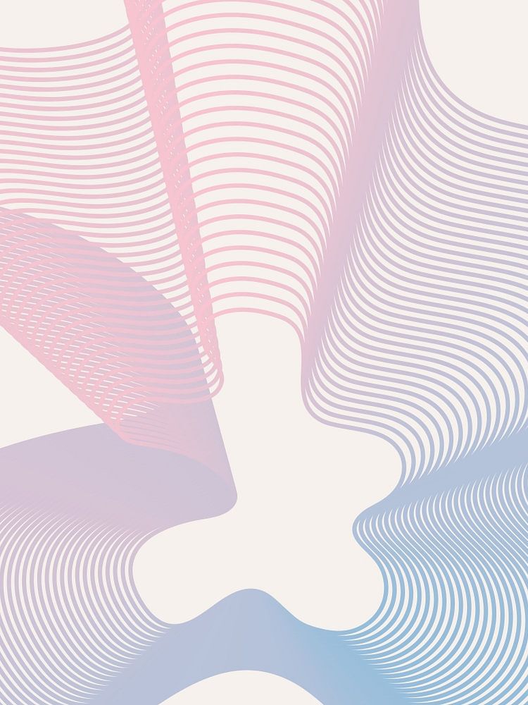 A poster with lines in an abstract shape whose colour gradient goes from pink to blue. The modern print is a great highlight in your living room.