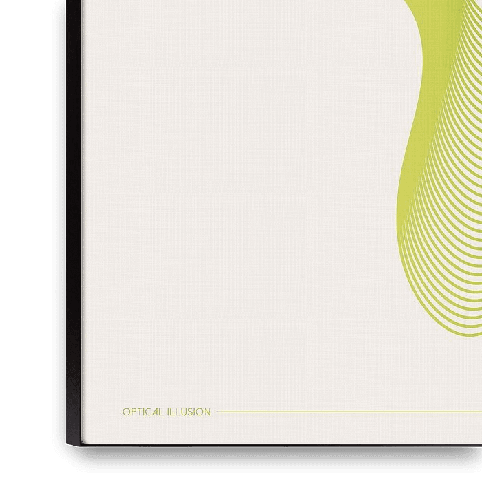 A poster with lines in an abstract shape whose colour gradient goes from yellow to green. The modern print is a great highlight in your living room.