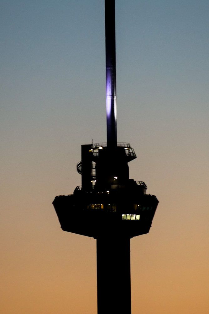 The Euromast during an orange-coloured sunset in the heart of Rotterdam.