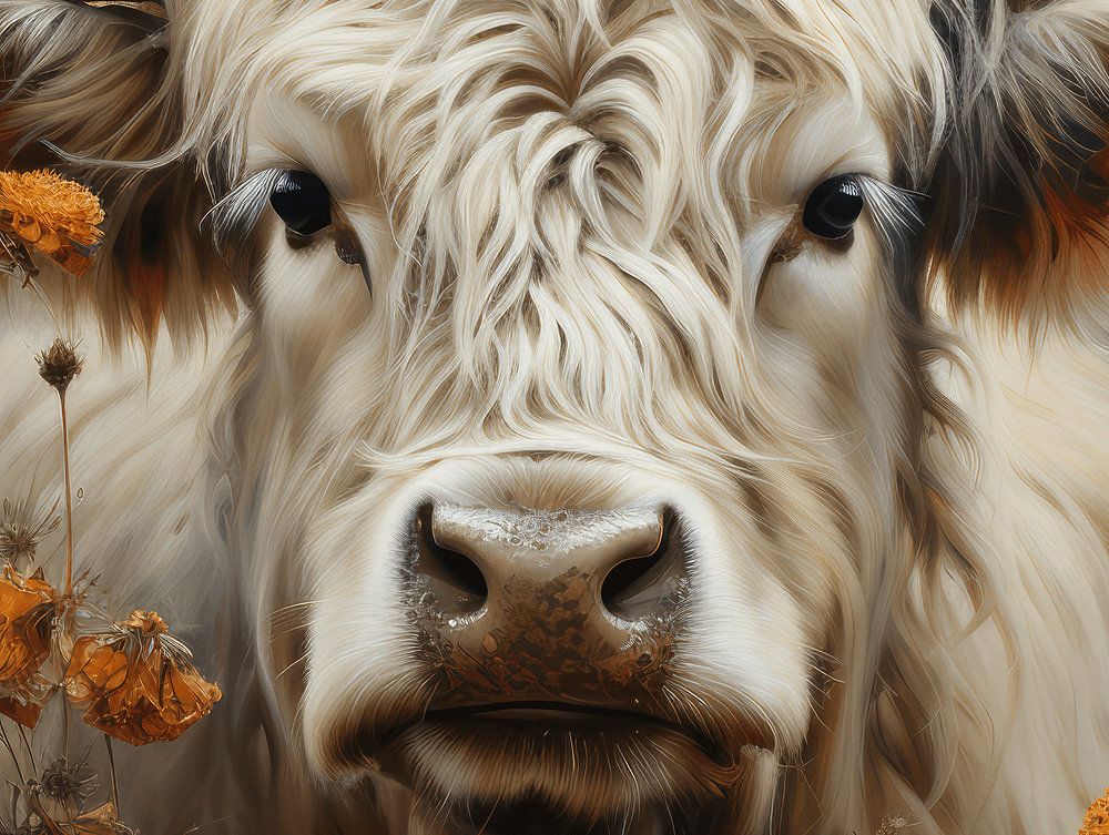 This beautiful fine art piece depicts a Scottish Highlander in soft orange tones, creating an atmosphere of warmth and tranquillity. The majestic look of the Highlander has been captured with attention to detail and precision. This artwork fits perfectly into rural, rustic or naturally inspired interiors. The light and orange tones evoke a sense of serenity and bring in the charm of the Scottish countryside.For questions, feel free to get in touch!