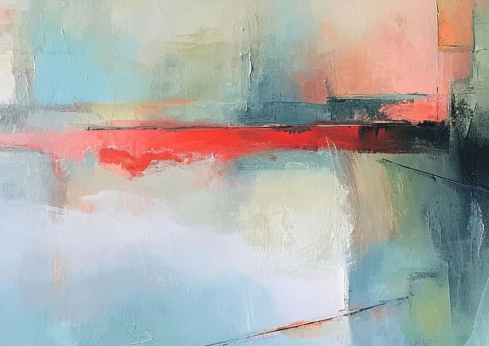 Orange Stripe | Abstract Dynamics - The canvas exudes a serene calm with its soft transitions and fluid abstract shapes. The balanced composition in a palette of cool blues and soft whites and greys is punctuated by a bold orange stripe that gives the artwork an unexpected dynamic. It is a timeless choice that enriches modern interiors without being overpowering.