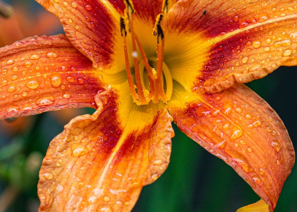 Orange glowing flower with water droplets | Macro photography by Flatfield