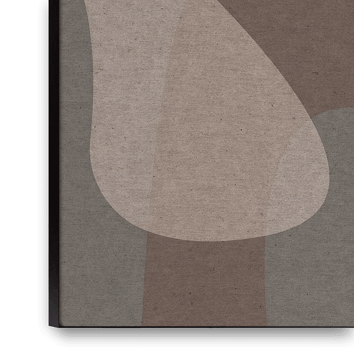 • Organic shapes in yellow, brown, grey. Modern geometry