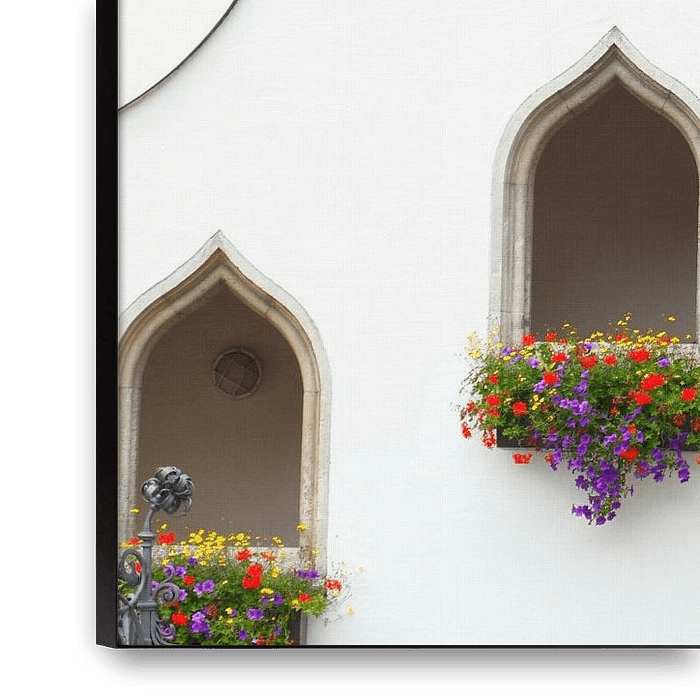 Buy this flower art Oriel with flowers at the town hall, old town centre, Kempten by Torsten Krüger on canvas, ArtFrame, poster and wallpaper, printed on demand in high quality.