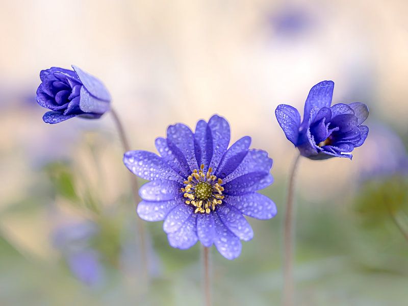 The Oriental Anemone. A delicate little flower in shades of purple and blue. I love these spring-flowering plants. They’re so cute, whether open or closed. I thought this arrangement was really lovely.