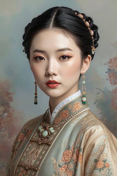 This ai generated image is a one-off and gives a reasonably good representation of a traditional Chinese lady from the 17th and 18th centuries.