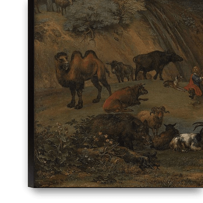 Buy Orpheus and the animals, Paulus Potter, 1650 as a reproduction on canvas, ArtFrame, poster and wallpaper, printed on demand in high quality.