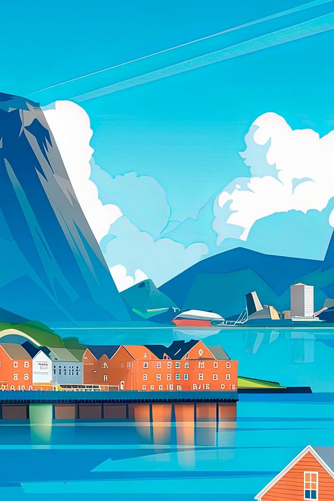Against a bright blue sky, picturesque Oslo unfolds with its colourful buildings by the water, framed by imposing mountains. This harmonious landscape combines nature and architecture in a fascinating way, while gentle waves play around the colourful houses on the coast. Inviting and lively, this motif epitomises the charm of Norway!