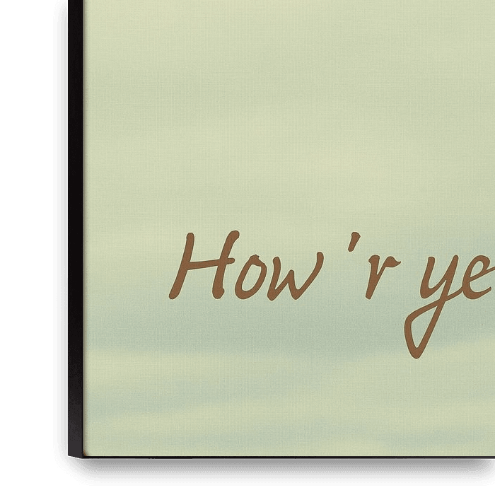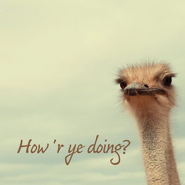 Quirky ostrich head with text 'Hi, how 'r ye doing?'