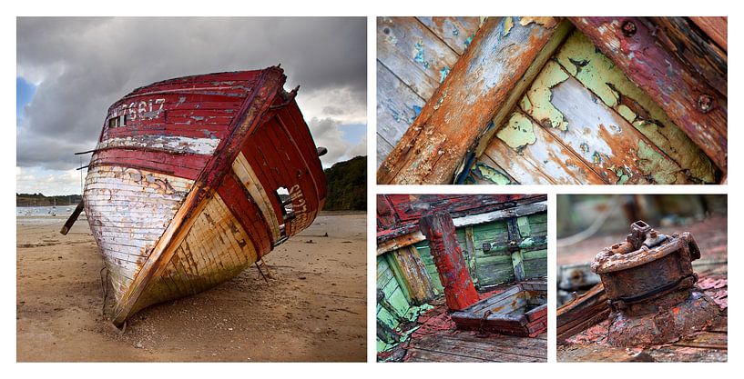 Collage van een oude vissersboot in Bretagne.