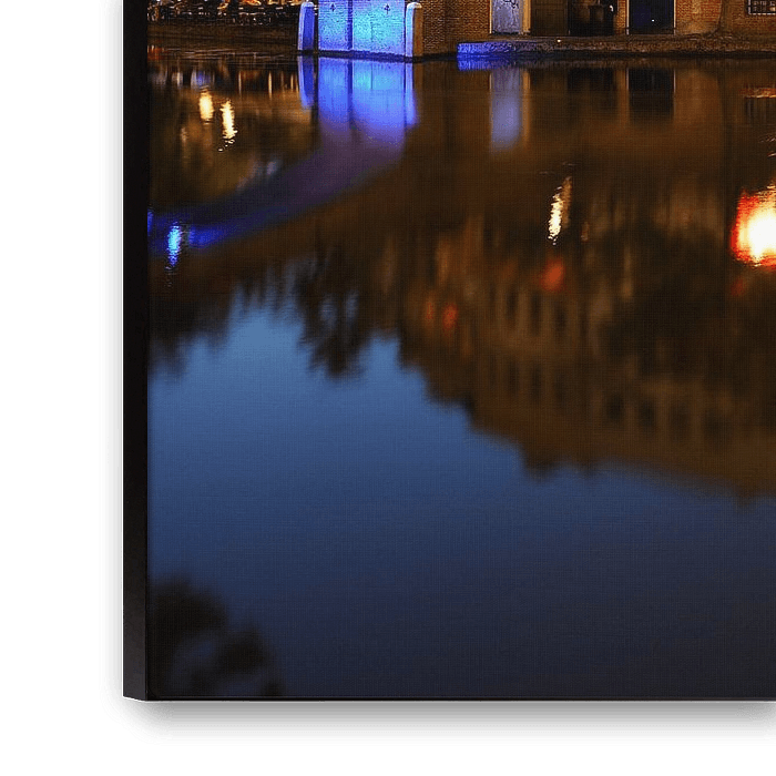 Oudegracht in Utrecht between Bezembrug and Stadhuisbrug with Winkel van Sinkel. On the right you can see part of the city hall. This photo was taken at dusk on 7 August 2014. Dark Utrecht. That's the name of my series of photos of Utrecht places after sunset. Most Dark Utrecht photos were shot at dusk. http://www.donkerutrecht.nl