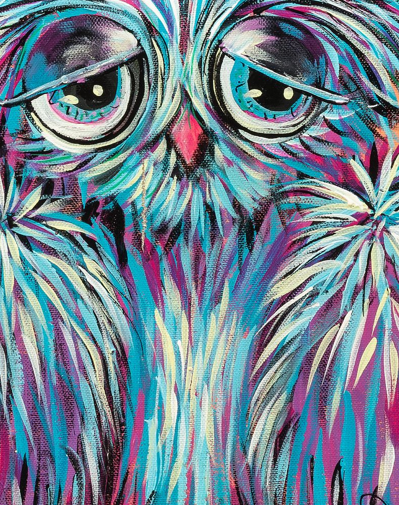 Artist Christel De Buyser loves owl chicks and has painted tig ones in her life.