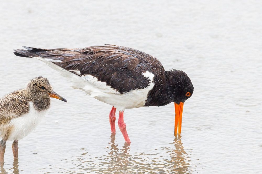 Oystercatcher with young at the edge of the Wadden Sea