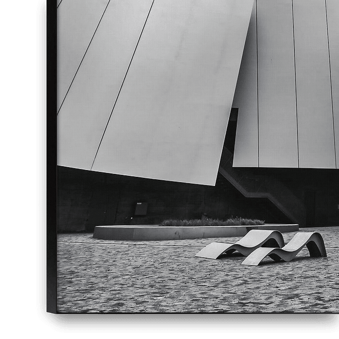 Buy the photo Ozeaneum Stralsund in black and white by Alexander Baumann on canvas, ArtFrame, poster and wallpaper, printed on demand in high quality.