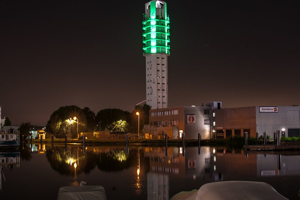 Een nachtfoto van de PTT Toren / TV Toren in Alphen aan den Rijn. Gemaakt in de Rijnhaven.
