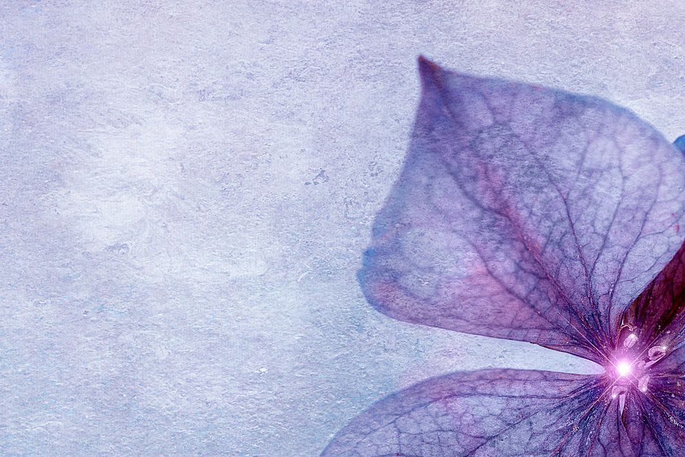 Macro of a Hydrangea petal, edited with textures for a picturesque effect and toned in blue and violet tones