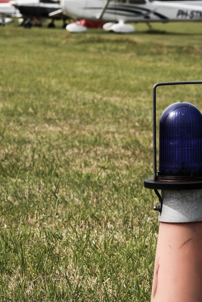 Een paaltje op een vliegshow. Dit plaatje met lamp er op markeert het pad waar de vliegtuigen mogen taxiën
