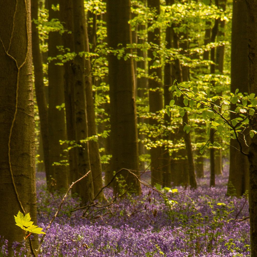 Eens per jaar wordt de bodem van het Belgische Hallerbos paars en wit van de bloeiende Bosanemonen en Boshyacinthen. Een bijzonder gezicht!