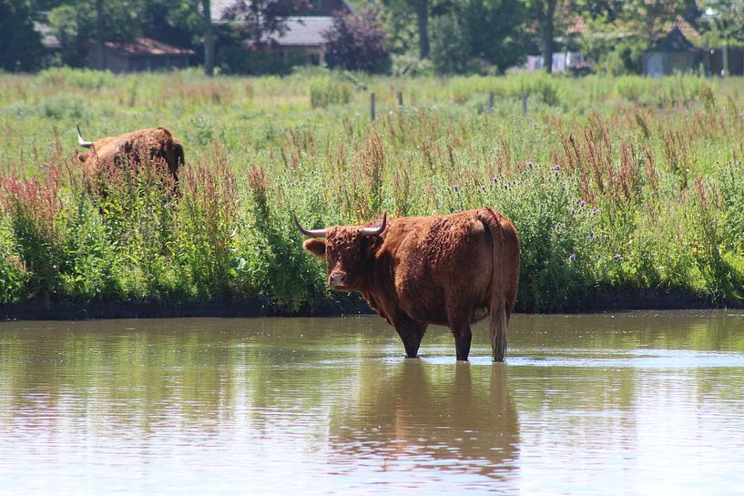 Buy this cow art Paddling by Erwin Delsman on canvas, ArtFrame, poster and wallpaper, printed on demand in high quality.
