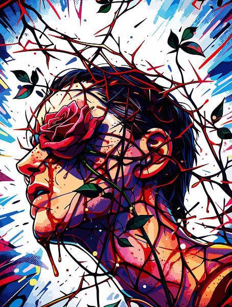 Buy this Popart artwork Painful Beauty Rose Thorns Woman Symbolic Comic Portrait by Ramy Salah Hefny on canvas, ArtFrame, poster and wallpaper, printed on demand in high quality.