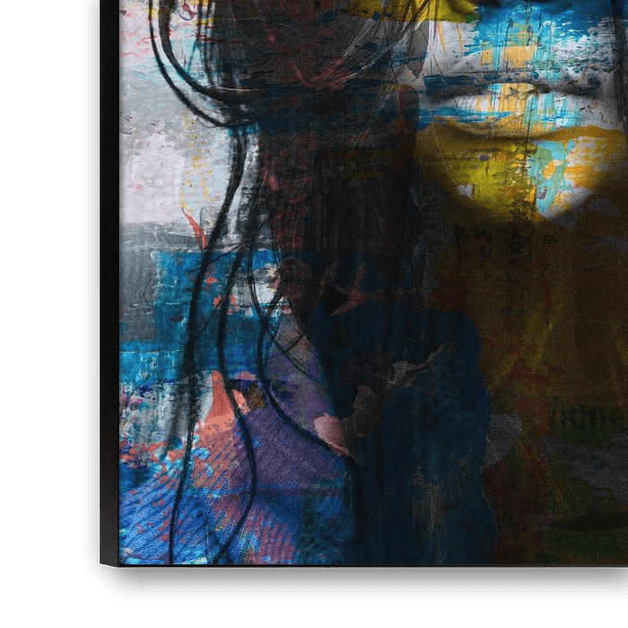 I created this image with different images in Photoshop. It is a colorful and modern image. The woman looks at you intensely but you can also clearly see all the smudges of paint.