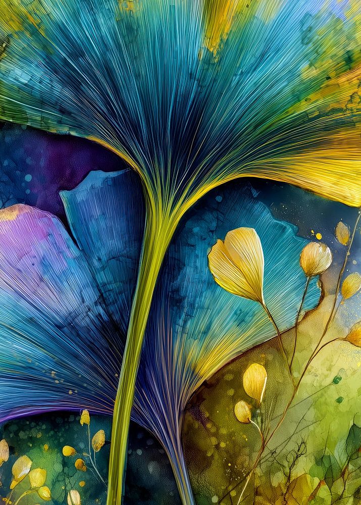 Buy this flower art Painterly florals Evergreen Ginkgo Biloba 3 by JBJart Justyna Jaszke on canvas, ArtFrame, poster and wallpaper, printed on demand in high quality.