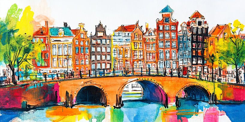 Painting Amsterdam - Painting of Amsterdam, ideal for your living room with an eye for detail. Amsterdam, a city that never ceases to surprise.