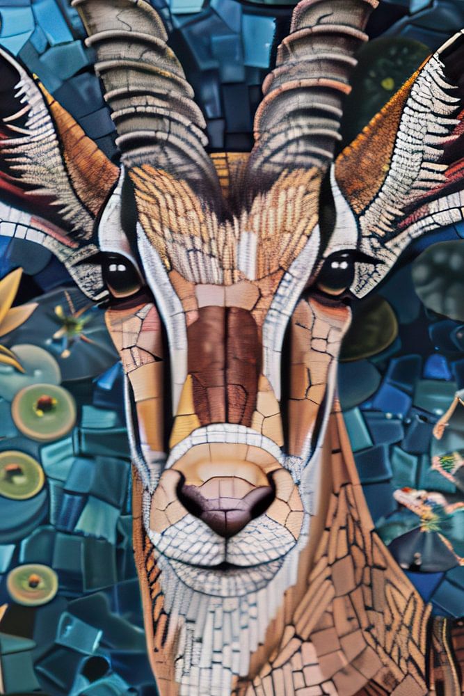 Details: antelope, flowers, nature, animal, colourful, fauna, flora, wild life, art, mosaic