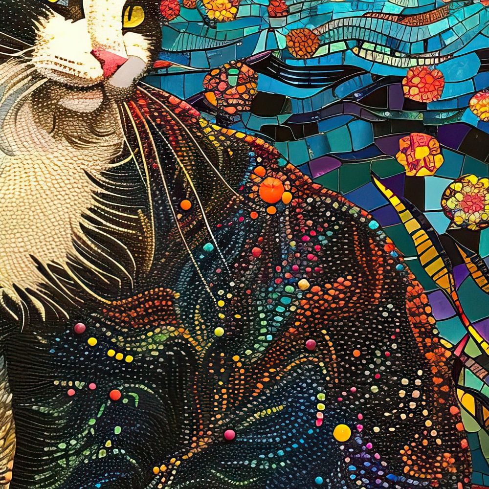 Details: cat, mosaic, colourful, floral, abstract, animal, art, decoration, wall, vivid