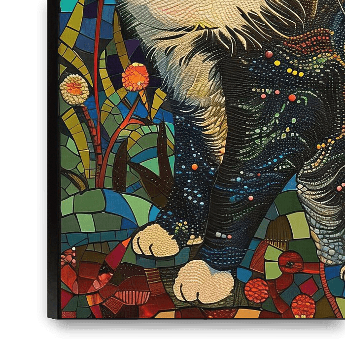 Details: cat, mosaic, colourful, floral, abstract, animal, art, decoration, wall, vivid