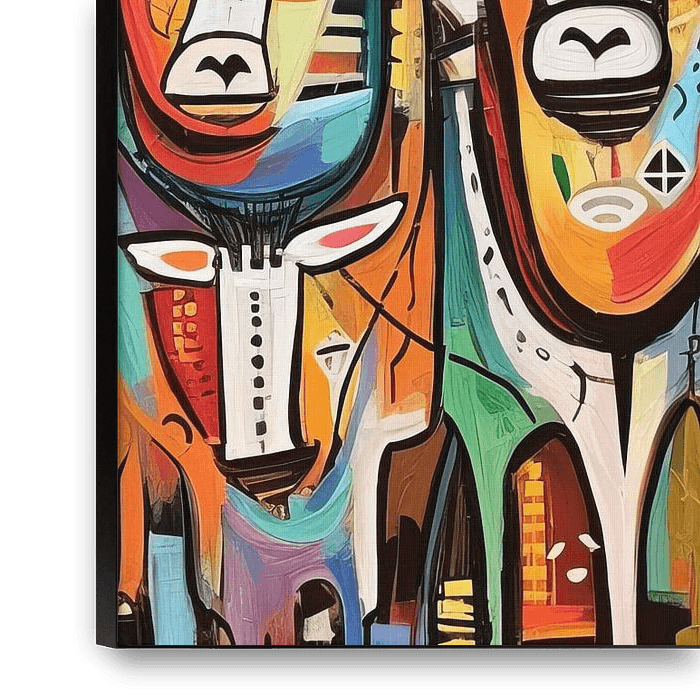 Details: cows, abstract, colourful, playful, art, animals, painting, modern, youthful, fantasy