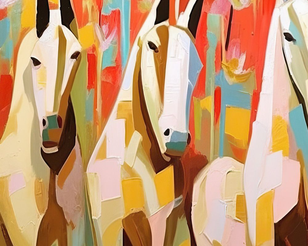 Details: horses, abstract, colourful, animals, friendship, nature, modern, art, painting, trio