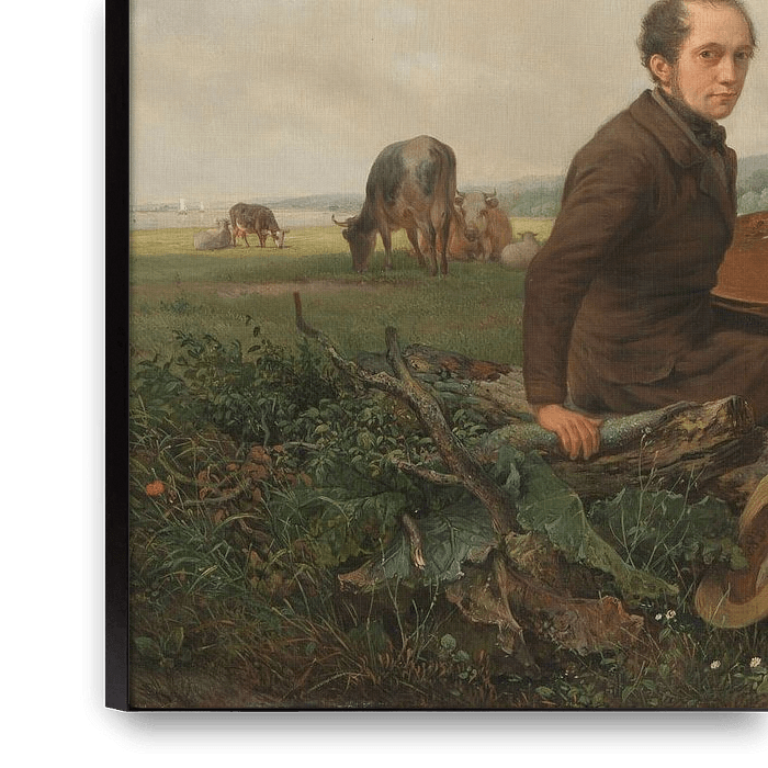 Buy Painting in a meadow landscape with cattle as a reproduction on canvas, ArtFrame, poster and wallpaper, printed on demand in high quality.