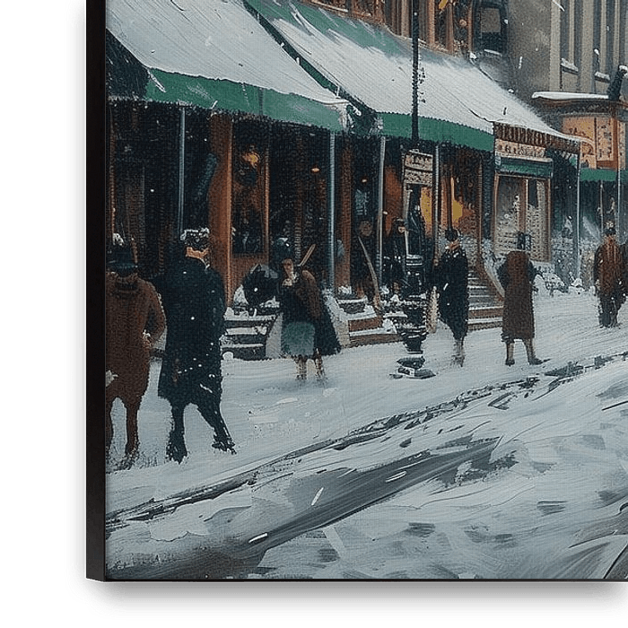 Buy this painting Painting of snowy street in New York city in early 20th century (KI) by Classic PrintArt as a reproduction on canvas, ArtFrame, poster and wallpaper, printed on demand in high quality.