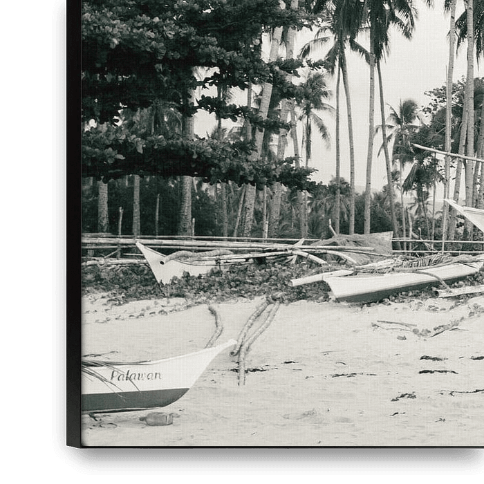 Palawan Memories captures the serene moment when time seems to stand still - fishing boats wait in silence under swaying palms, shrouded in soft tropical light. Bring this calm, tropical atmosphere into your home and let every glance take you to a place where the world slows down.