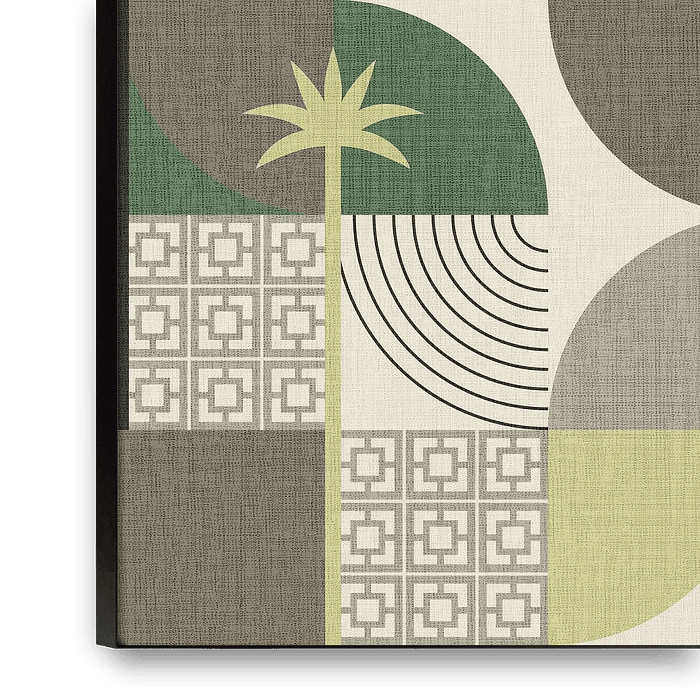 Buy this modern artwork Palm Springs Desert Shapes and Palms Green by Alexandra Weise on canvas, ArtFrame, poster and wallpaper, printed on demand in high quality.