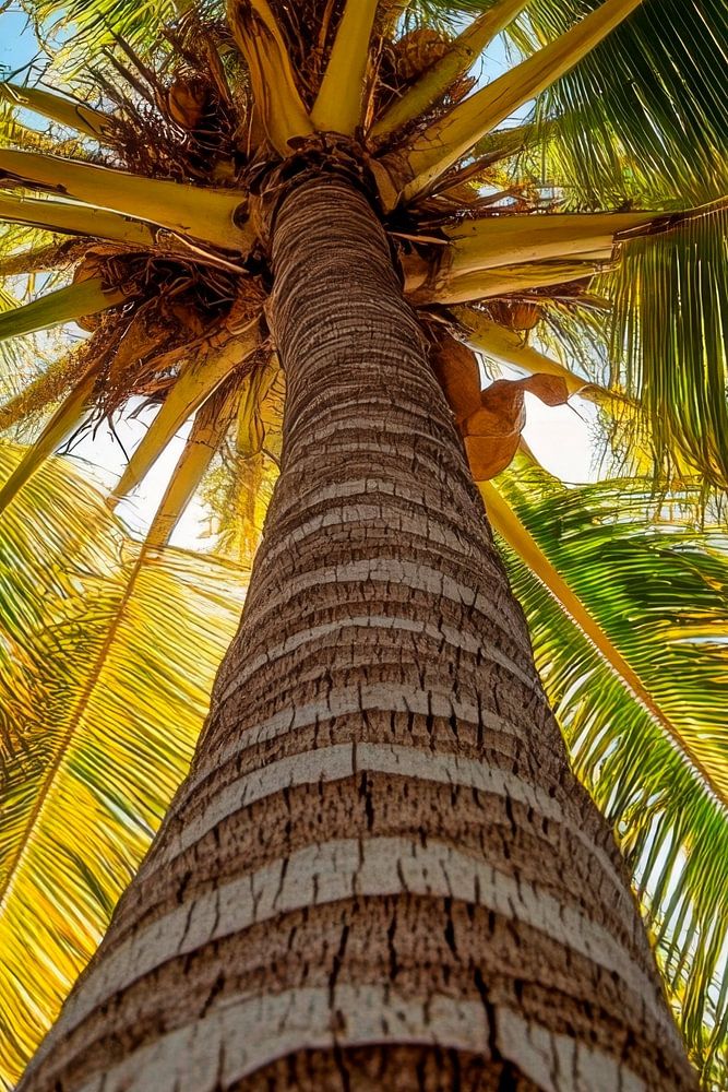Sunlight filters through the lush, green leaves and lends the moment a magical aura. The majestic palm rises powerfully into the sky, its trunks made of radiant wooden structures tell stories of tropical breezes and warm days. A feeling of tranquillity and exoticism envelops this fascinating sight.