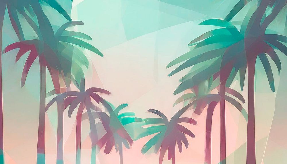 Buy this landscape artwork Palm trees with sunset u by Mustafa Kurnaz on canvas, ArtFrame, poster and wallpaper, printed on demand in high quality.
