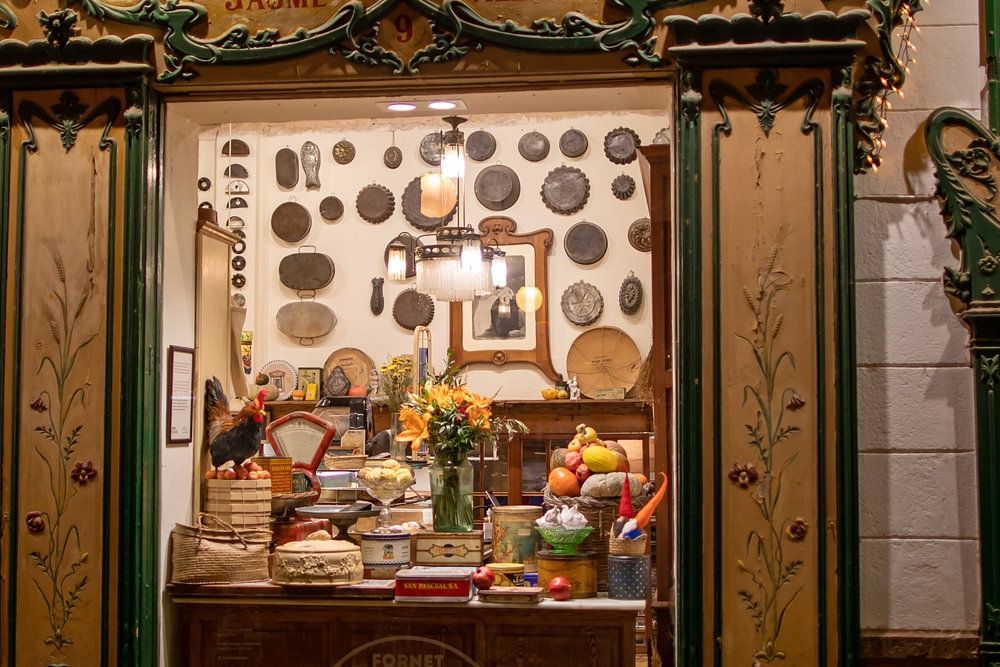 What distinguishes the bakery at the Teatre Principal architecturally is its listed facade in the style of Modernismo, a Spanish variety of Art Nouveau. It was attached to the 19th century townhouse in 1916. Besides the dragons spreading their wings above the entrance door, the confectioner's shop window is decorated all over with floral ornaments.