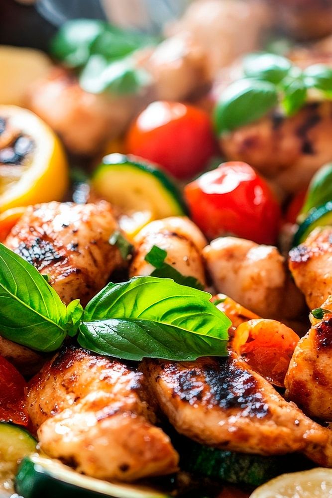 A tantalising spectacle of colour pleases the eye: tender pieces of chicken surrounded by juicy tomatoes and freshly scented basil, the interplay of steaming warmth and bright green immediately whets the appetite. This culinary composition lends the kitchen an inviting flair and inspires new cooking adventures.