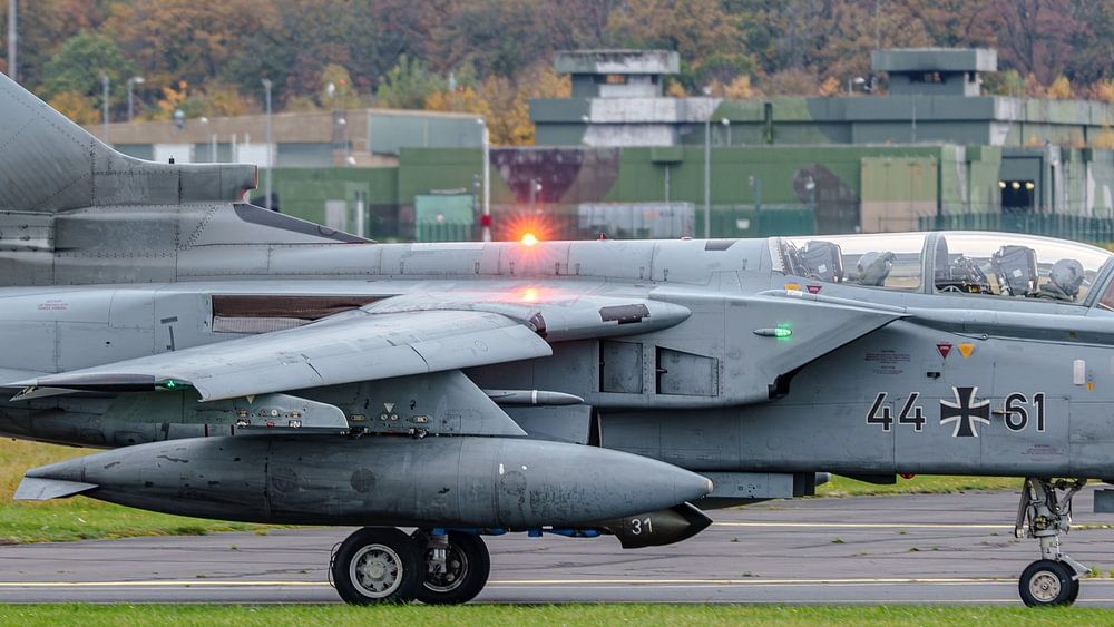 Panavia Tornado of the German Air Force photographed just before departure at the beginning of the runway. This aircraft is from Fliegerhorst Buchel and is temporarily based at Fliegerhorst Nörvenich due to reconstruction work.
