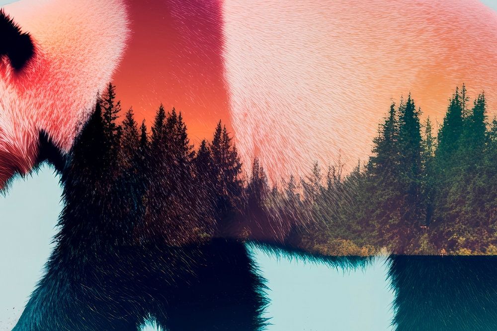 A mesmerising panda, with soft silhouettes of a mysterious forest shimmering through it, adds a harmonious touch to any room. The peaceful combination of vibrant colours and nature motifs is perfect for the bedroom, where it creates a calming atmosphere, or for the living room to encourage conversations about the beauty of nature.
