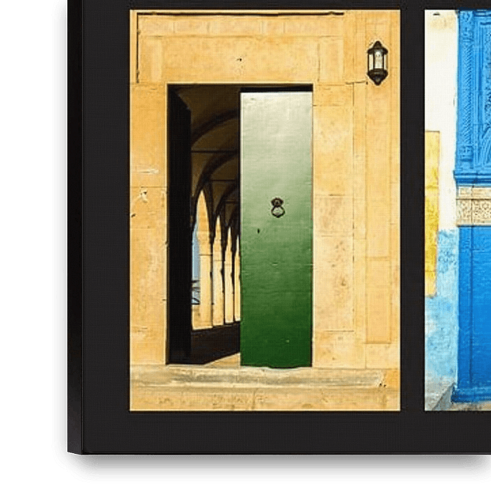 Panorama collage of oriental doors and portals in Fez, Marrakesh and Rabat in Morocco