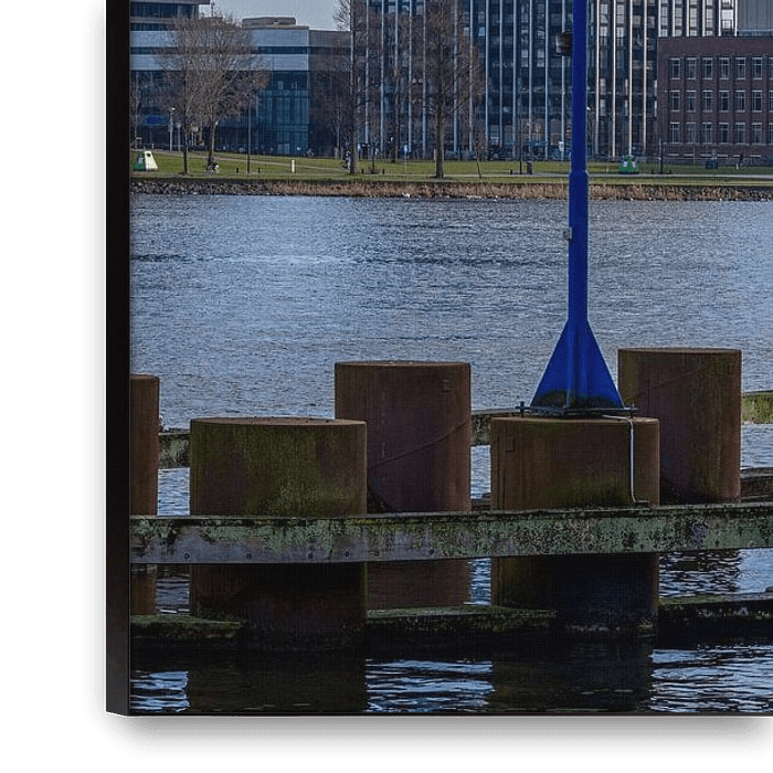 The high-rise buildings on the north side of the IJ in Amsterdam are giving the Noord district increasing allure. The Maritim Hotel, the ADAM Tower and the Eye Museum dominate the skyline. The foreground is occupied by a jetty with a clock on the lamppost indicating that it is 12 noon. On the far right, we see the Movepick Hotel and the…