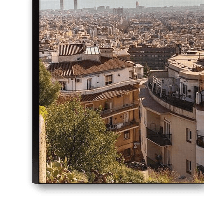 Buy this landscape artwork Panorama from Barcelona to the sea by thomaswphotography on canvas, ArtFrame, poster and wallpaper, printed on demand in high quality.