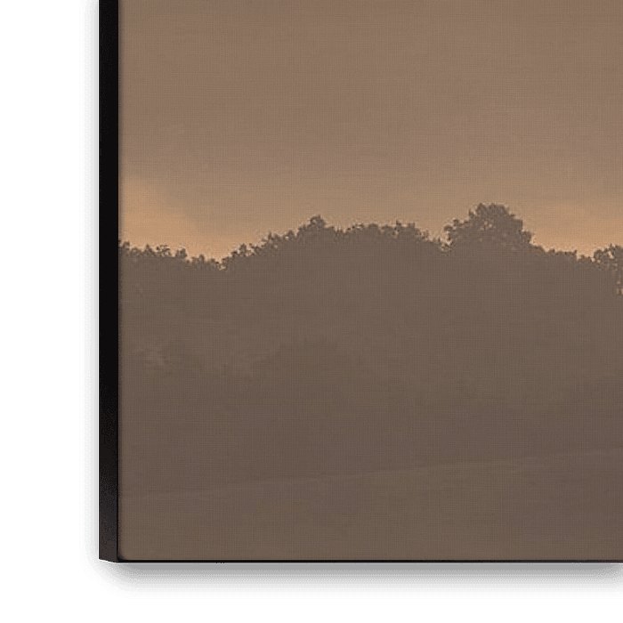 A 3:1 panorama photo of a sunrise with warm tones and full backlight of the town of Pienza with morning mist over the fields. Pienza is in the heart of Tuscany, in Val d'Orcia in central Italy.