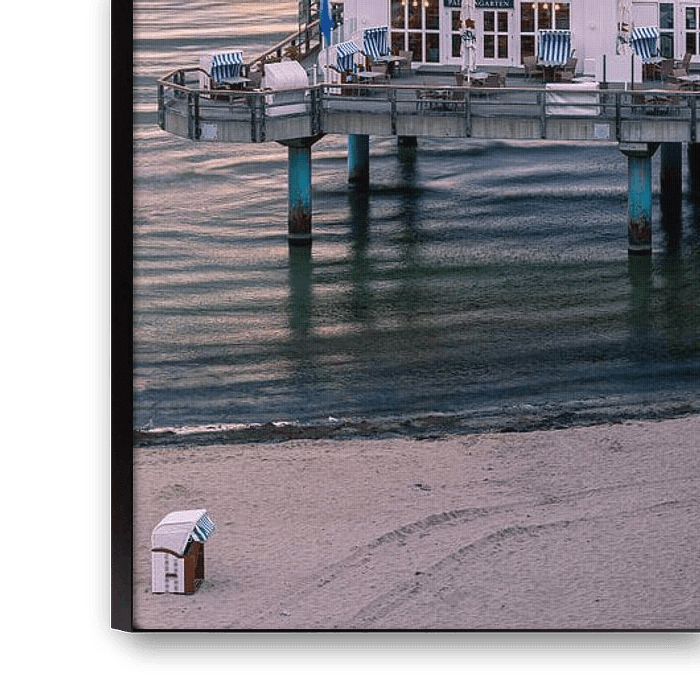Sunrise at the Sellin Pier (German: Seebrücke Sellin) is a pier in the Baltic resort of Sellin on the German island of Rügen. The pier has a restaurant near the beach above the water and has a diving gondola.